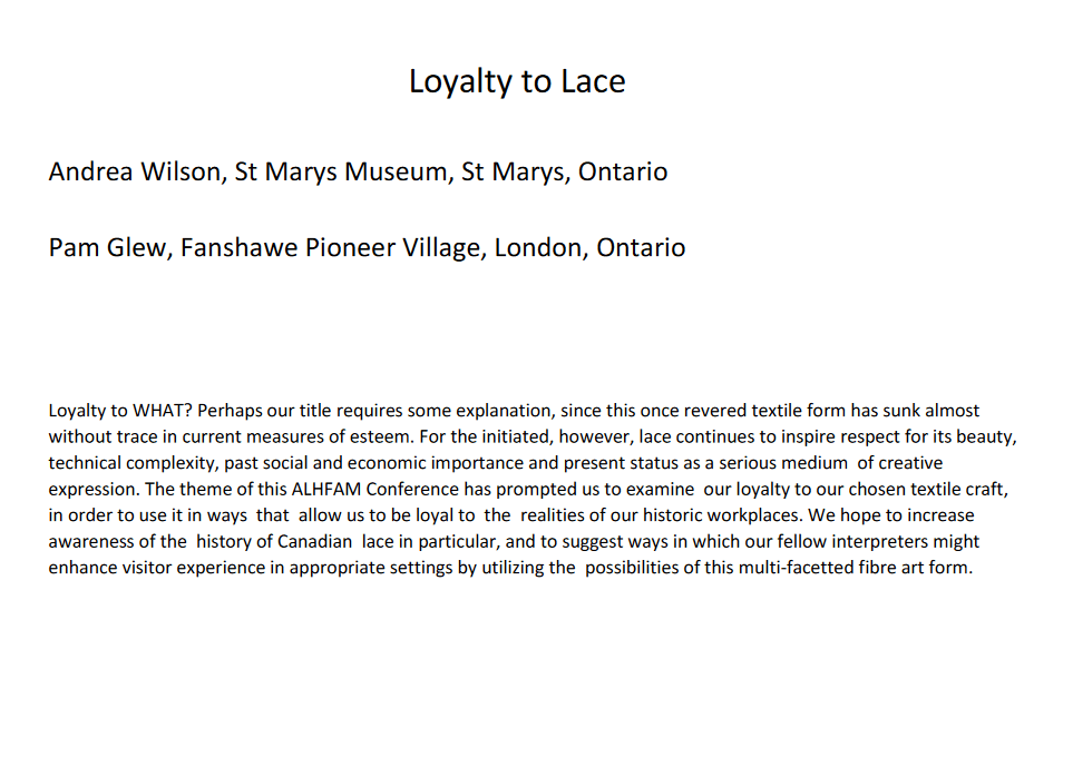 Wilson, Andrea and Glew, Pam. Loyalty to Lace, 11 pages. Posted February 28, 2024. FIRST PAGE. File size 1,900 KB PDF. Powerpoint slides as PDF