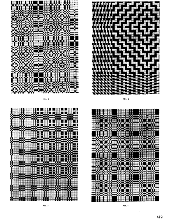 Entwürfe für Damast-Tiscgzeug (Gebild-Gewebe), Hamann, Artur. Melliand's Textilberichte [Melliand's Textile Reports], 1927, 2 pages. Posted June 2, 2005. SAMPLE PAGE. File size 640 KB PDF