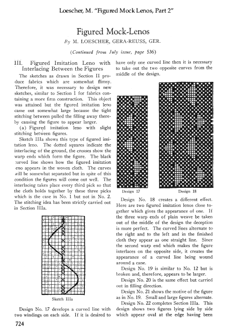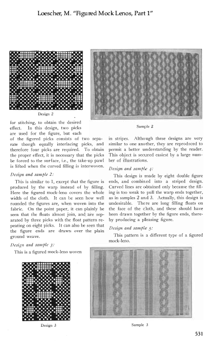 Figured Mock Lenos, Part 1, Loescher, M. The Melliand, Vol. 1, No. 4 (July 1929), 8 pages. Posted February 10, 2002. SAMPLE PAGE. File size 1.7 MB PDF