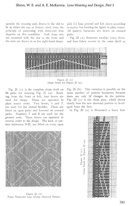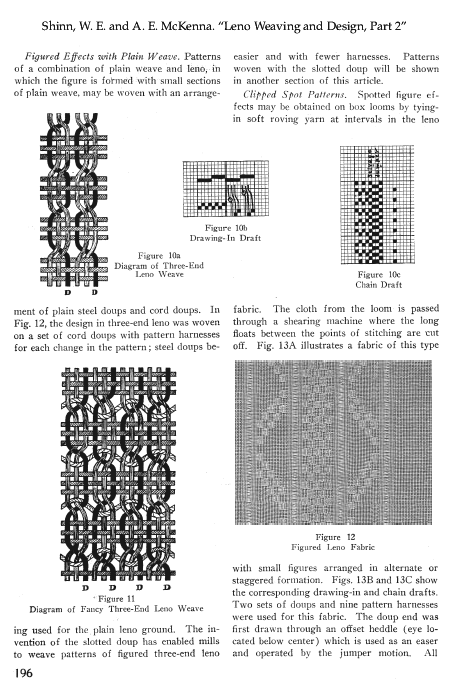 Leno Weaving and Design, Part 3, Shinn, W. E. and A. E. McKenna. The Melliand, Vol. 2, No. 6 (September 1930), 6 pages. Posted October 8, 2002. SAMPLE PAGE. File size 1.5 MB PDF