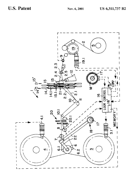 Method and Weaving Loom for Producing a Leno Ground Fabric, US06311737, Wahhoud, Adnanet al.. November 6, 2001, 9 pages. Posted March 13, 2002. CD (HWDA10). SAMPLE PAGE. File size 436 KB PDF