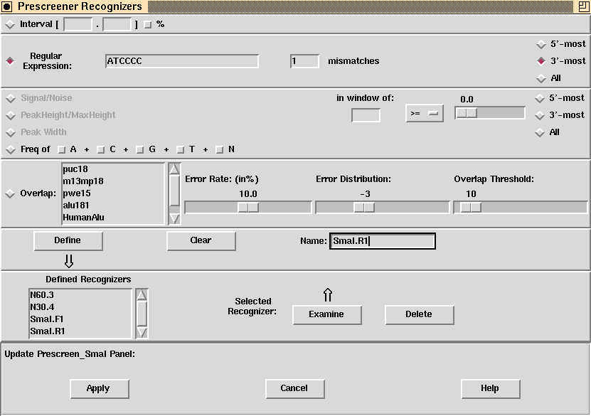 Prescreener Recognizers Sub-Panel